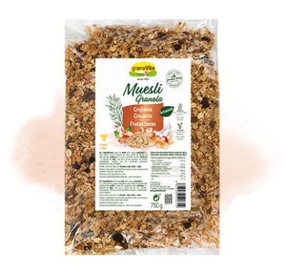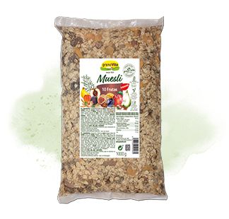 Deliciosos mueslis. Tanto sus ingredientes como las proporciones de los mismos, han sido cuidadosamente estudiados con el fin de aportar al cuerpo de forma equilibrada los nutrientes necesarios para comenzar el día llenos de energía. Hay que destacar el importante aporte de hidratos de carbono de absorción lenta, los cuales proporcionan energía para muchas horas.